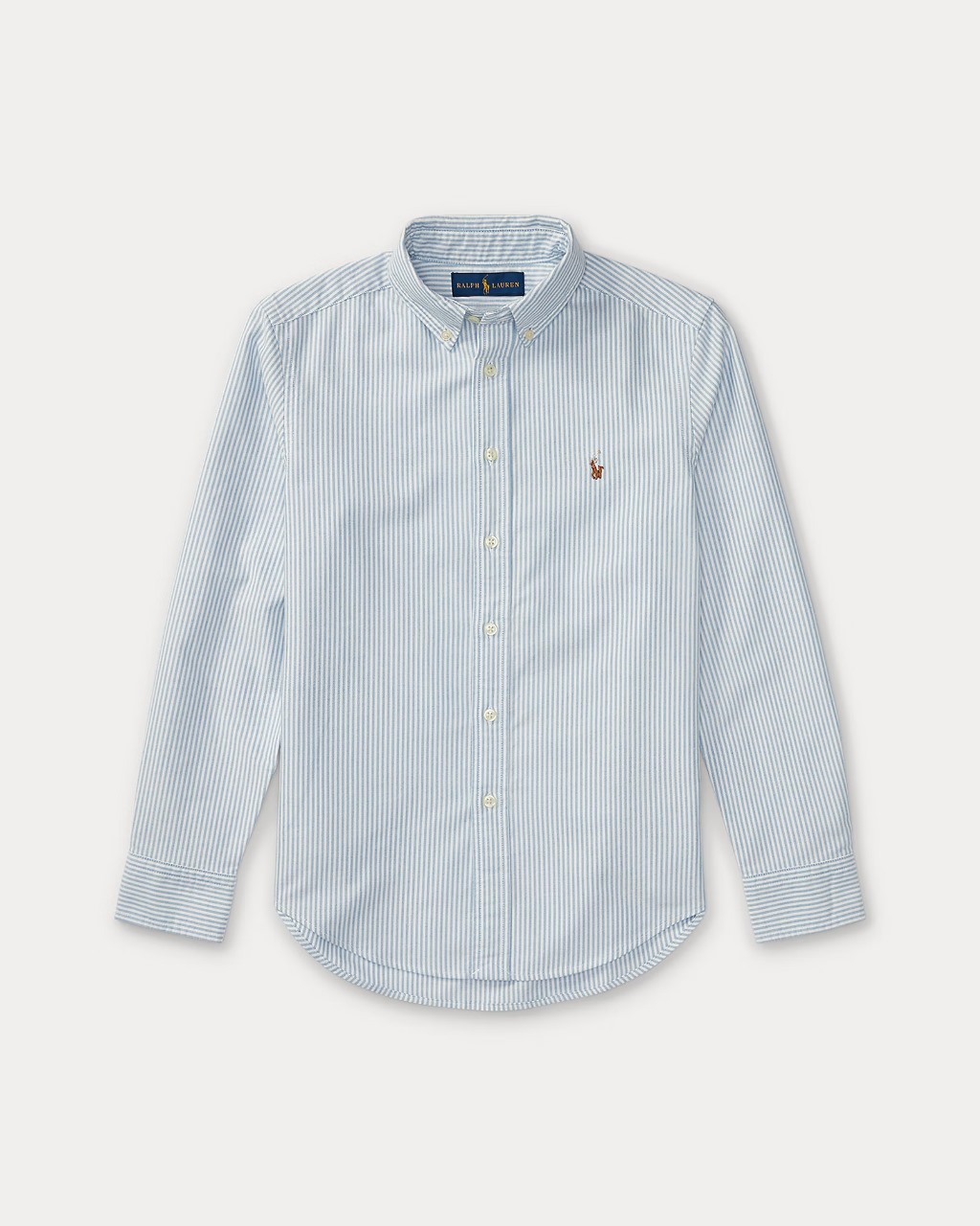 Camisa Manga Longa, Algodão Oxford, Listras Azul e Branca, Polo Ralph Lauren