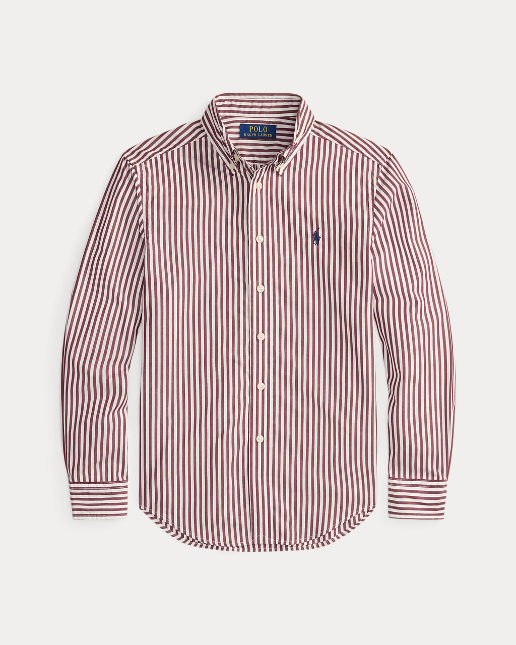 Camisa Manga Longa, Algodão Popeline, Listras Vinho e Branca, Polo Ralph Lauren