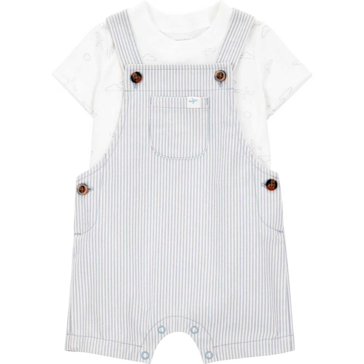 Conjunto Camiseta e Jardineira, Azul Listras, Carter's Child of Mine