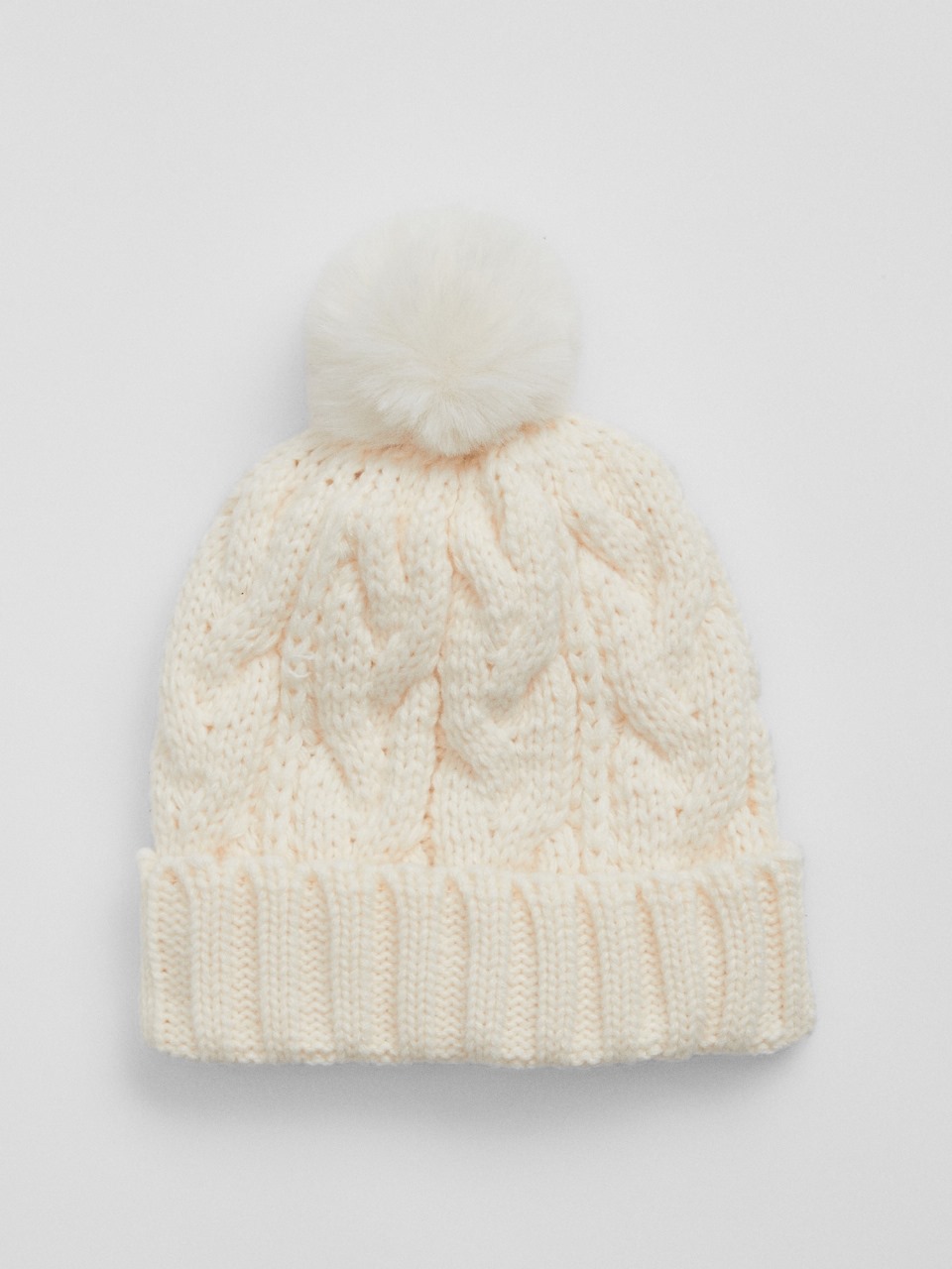 Gorro Infantil Trançado com Pompom de Pelúcia, Off-White, GAP