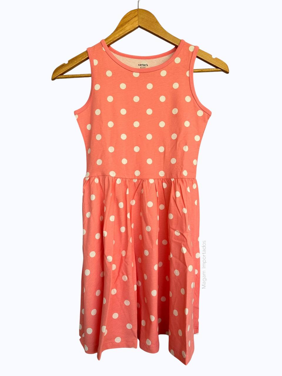 Vestido Infantil, Coral com Poás Brancos, Carter’s