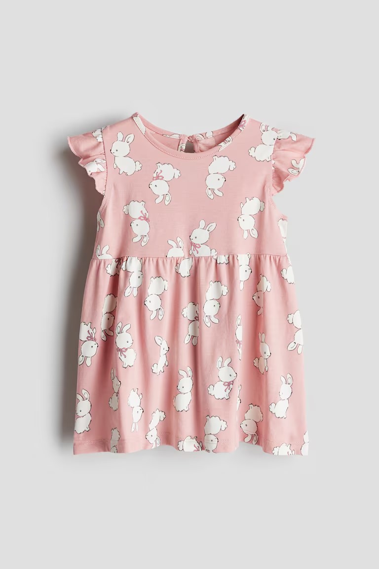 Vestido Infantil, Rosa com Estampa de Coelhinhos, H&M